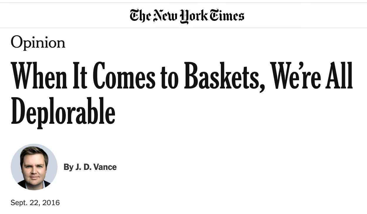 In that op-ed, Vance wrote: “Mr. Trump, like too much of the church, offers little more than an excuse to project complex problems onto simple villains.” Ahem.