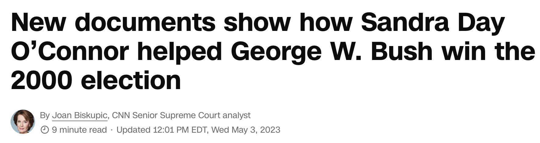 So O’Connor was running around making unhinged partisan accusations about Gore, while her husband was fretting that a Gore win would delay O’Connor’s planned retirement, all while the Supreme Court on which she sat was about to decide a case that would determine the outcome of the election. Sure sounds like a judge with a direct personal interest in the outcome of the Bush v. Gore case! It’s probably a coincidence, though, that O’Connor just happened to cast the deciding vote to hand Bush the White House — after she wrote a memo to her colleagues arguing for the outcome before oral arguments even took place: